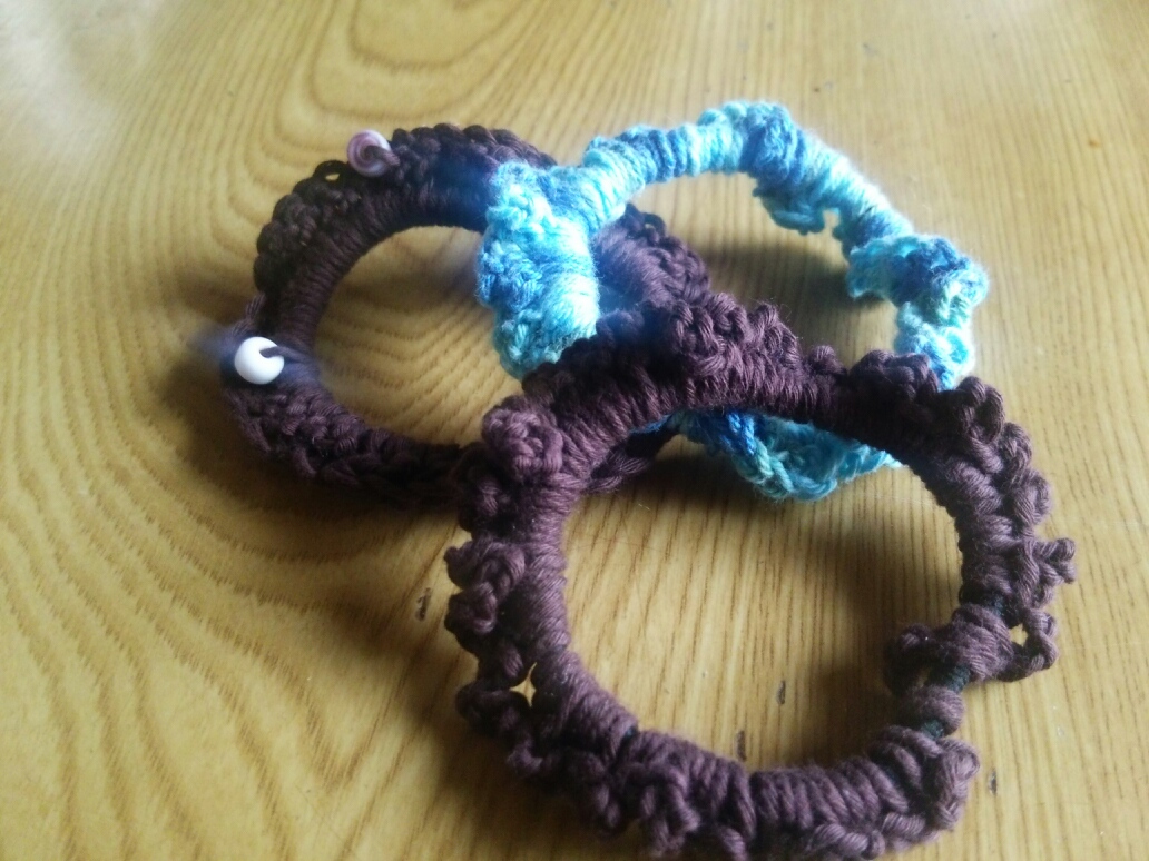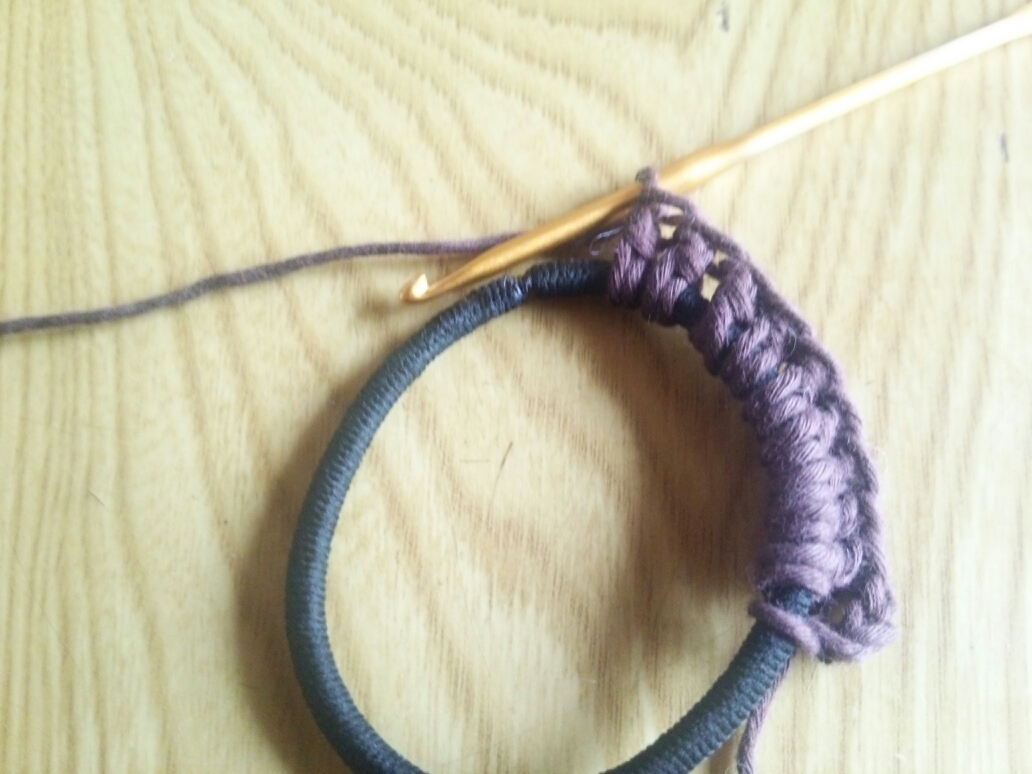 かぎ針でヘアゴムを編みくるむだけ。