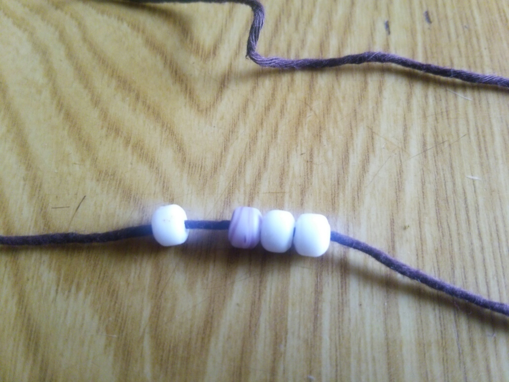 予めビーズを糸に通しておきます。