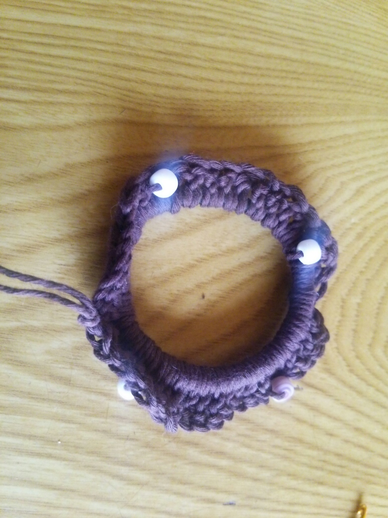 ほどよき所でビーズを編み込み