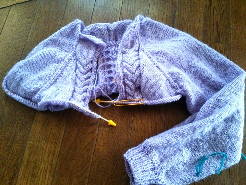 カーディガンも編みかけなのに止まらなくて