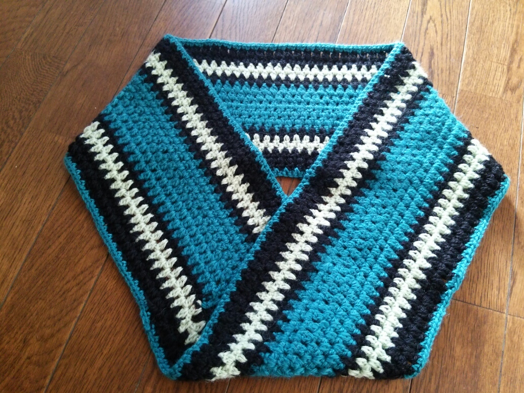 実際編み上がって試着してみたらかなり暖かかったので仕事用にしてしまいました。