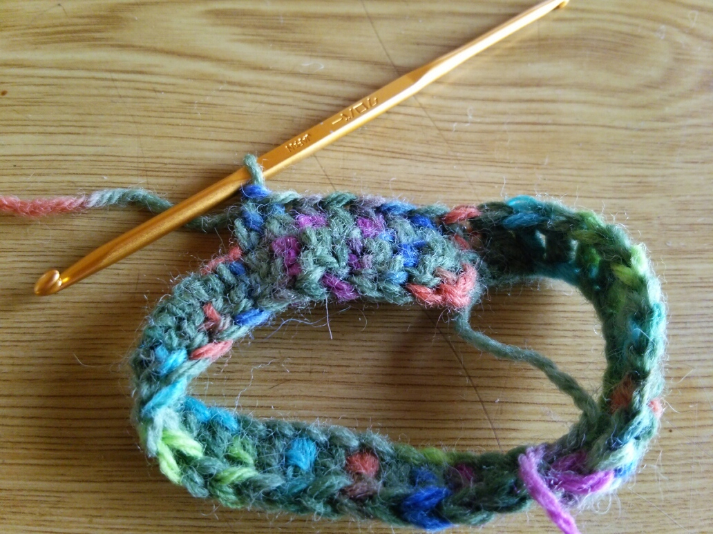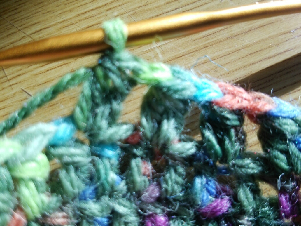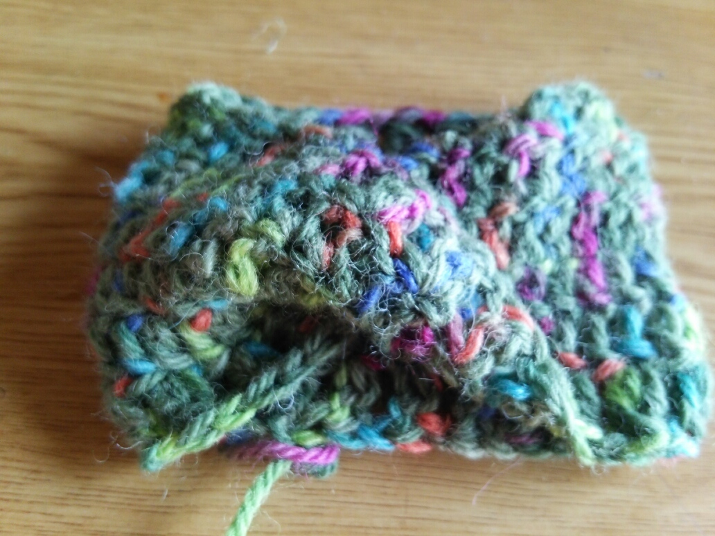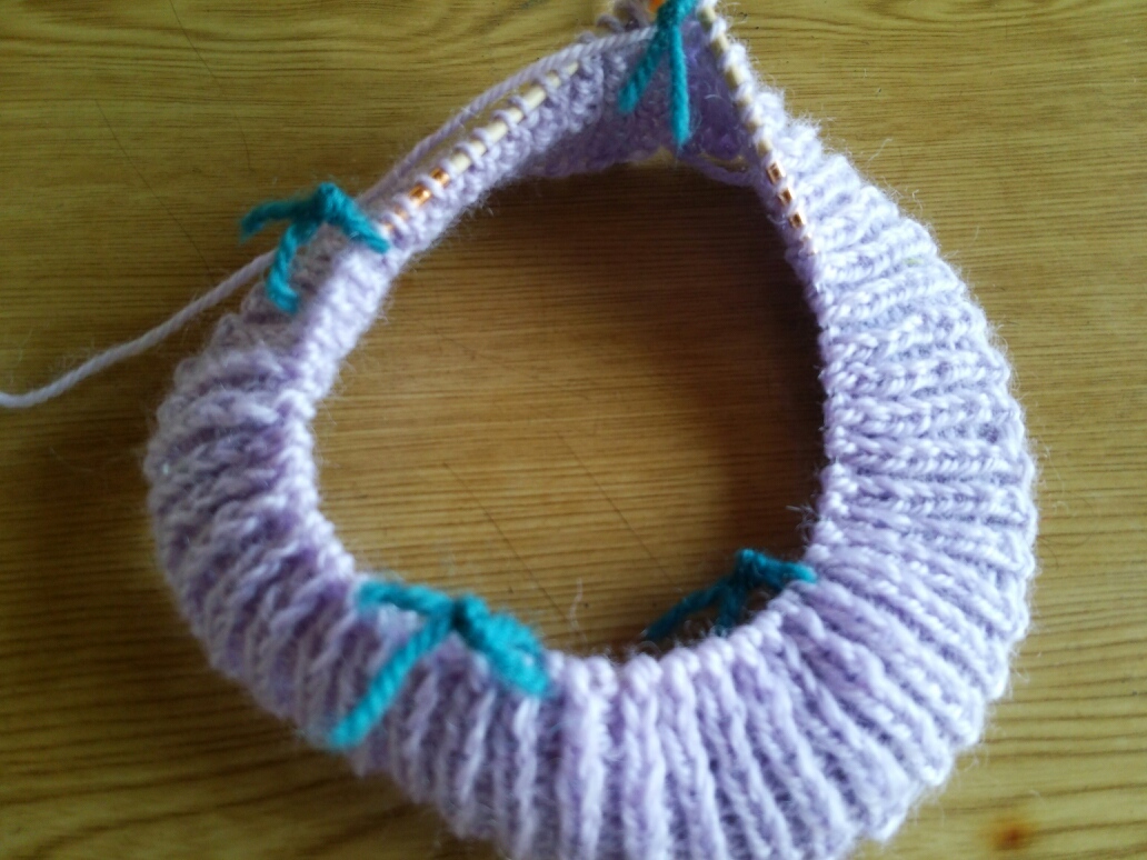 とりあえずイギリスゴム編みで襟ぐりを編んで