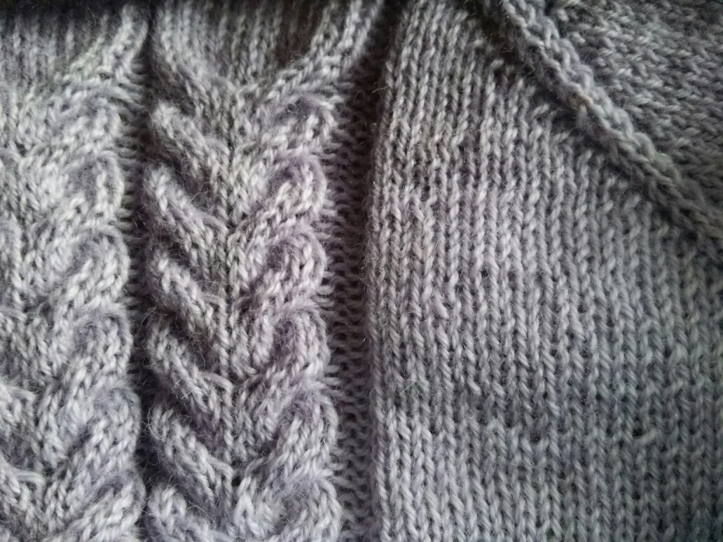 縄編み&透かし編みでせっせと編んで