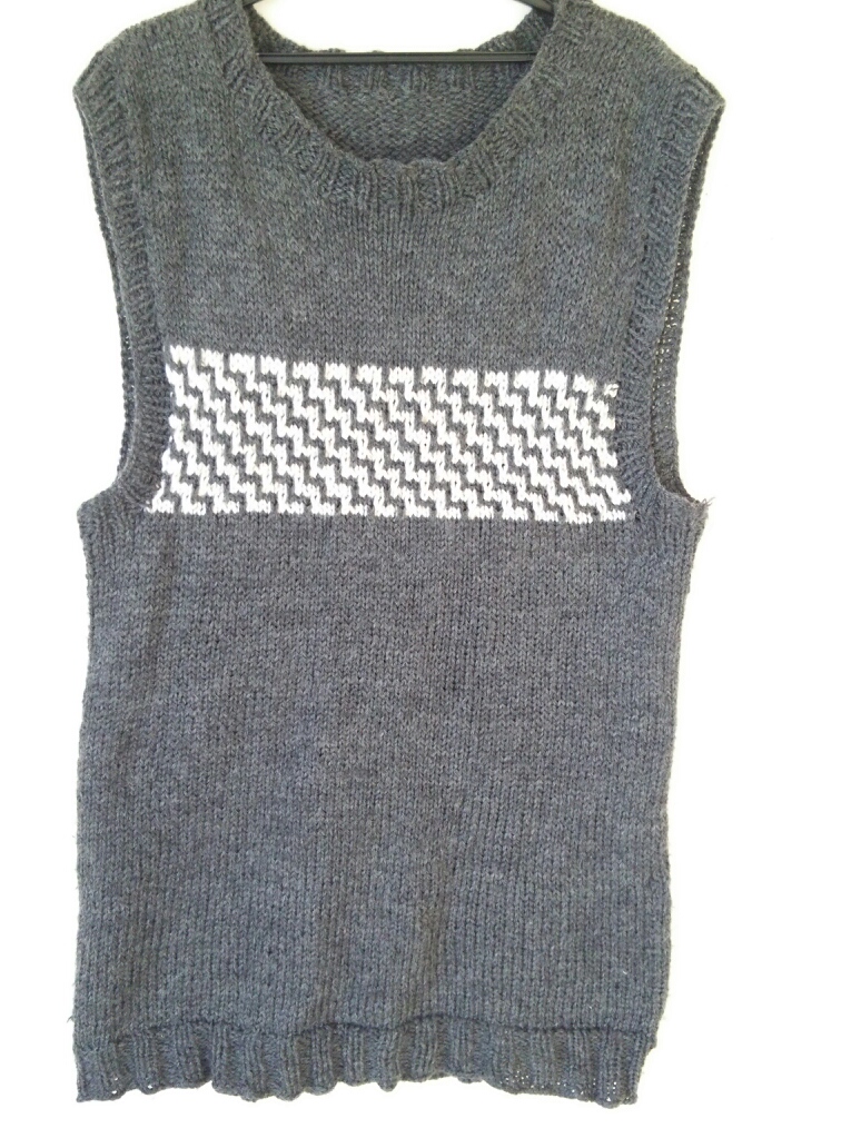 ちょっと古いものだし、何回も洗ってヨレて来てるんですが、過去に編んだベストです。