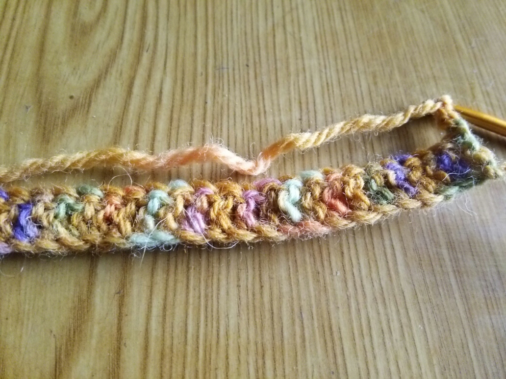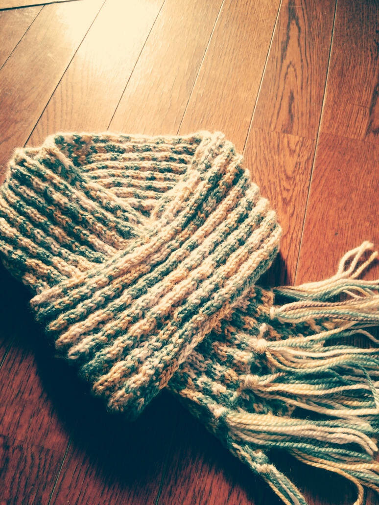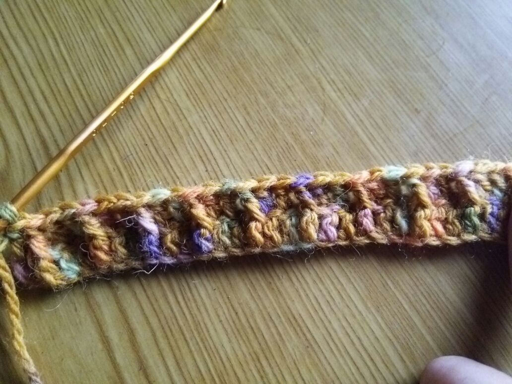 幅は細めで、長さもそんなに長くないんですが、編んでる最中