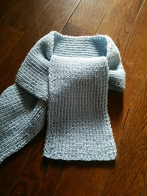 ちなみに、ネックウォーマーの完成品、どう写真に撮っても