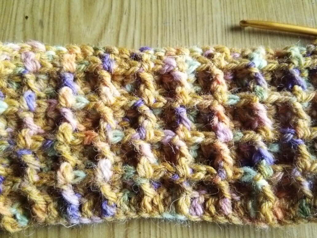なんと100円ショップのふわもこ毛糸を使った方眼編みのマフラー
