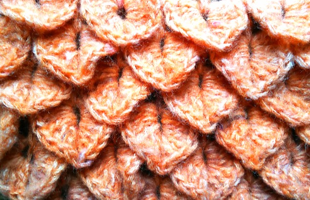 ※うろこの中心の1目の長編みは支えのような物なので編まない。