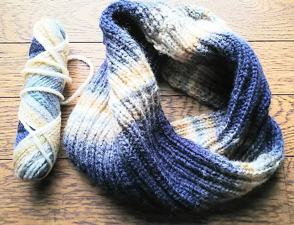 1玉で編めるスヌードも編んでみましたよ。