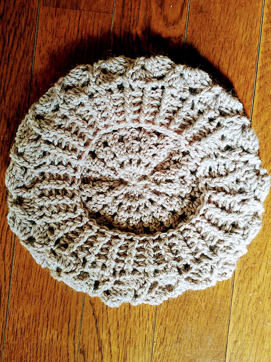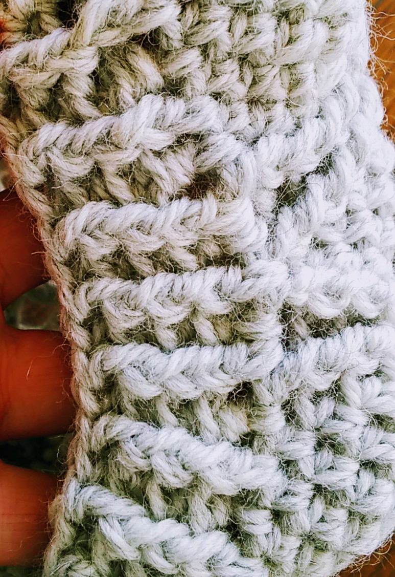 リブ部分は棒針編みのゴム編みに見えますが、かぎ針の引抜き編みなんですよ。