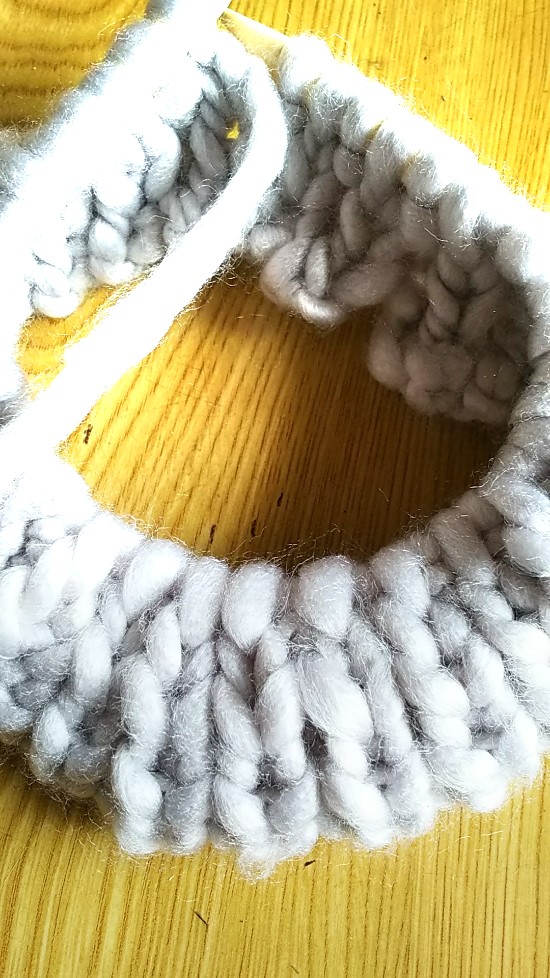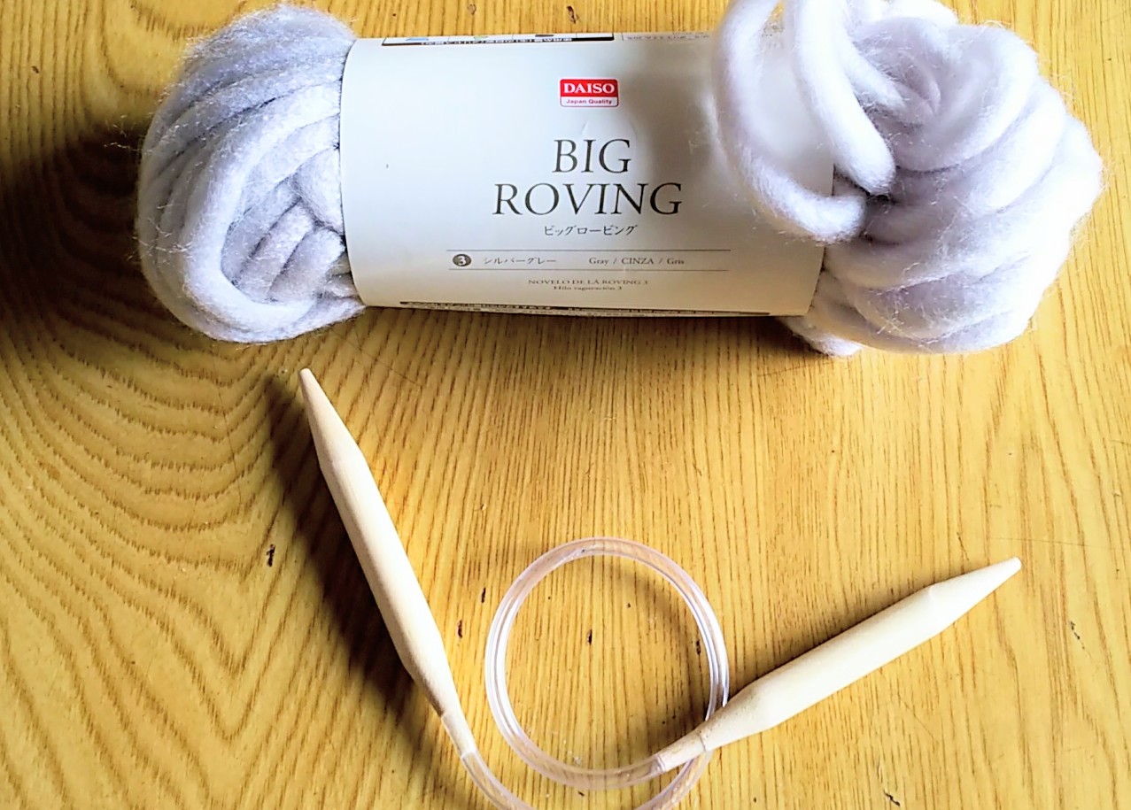 100均から極太ロービングの糸(アクリル100%)と極太輪針(10ミリ/40センチ)買ってきて